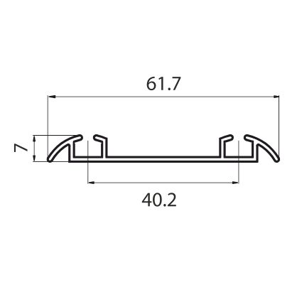 верхними роликами 39мм. Крепится к полу двусторонней клеевой лентой. Центральный паз может декорироваться мебельной кромочной лентой шириной 30 мм.